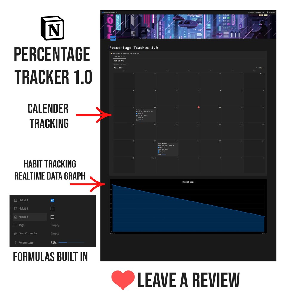 π Percentage tracker to monitor your progress towards your goals π Dynamic habit tracking that adapts to your progress π Set up routines and receive notifications and reminders πͺ Perfect for entrepreneurs, students, and professionals π» Works seamlessly with Notion